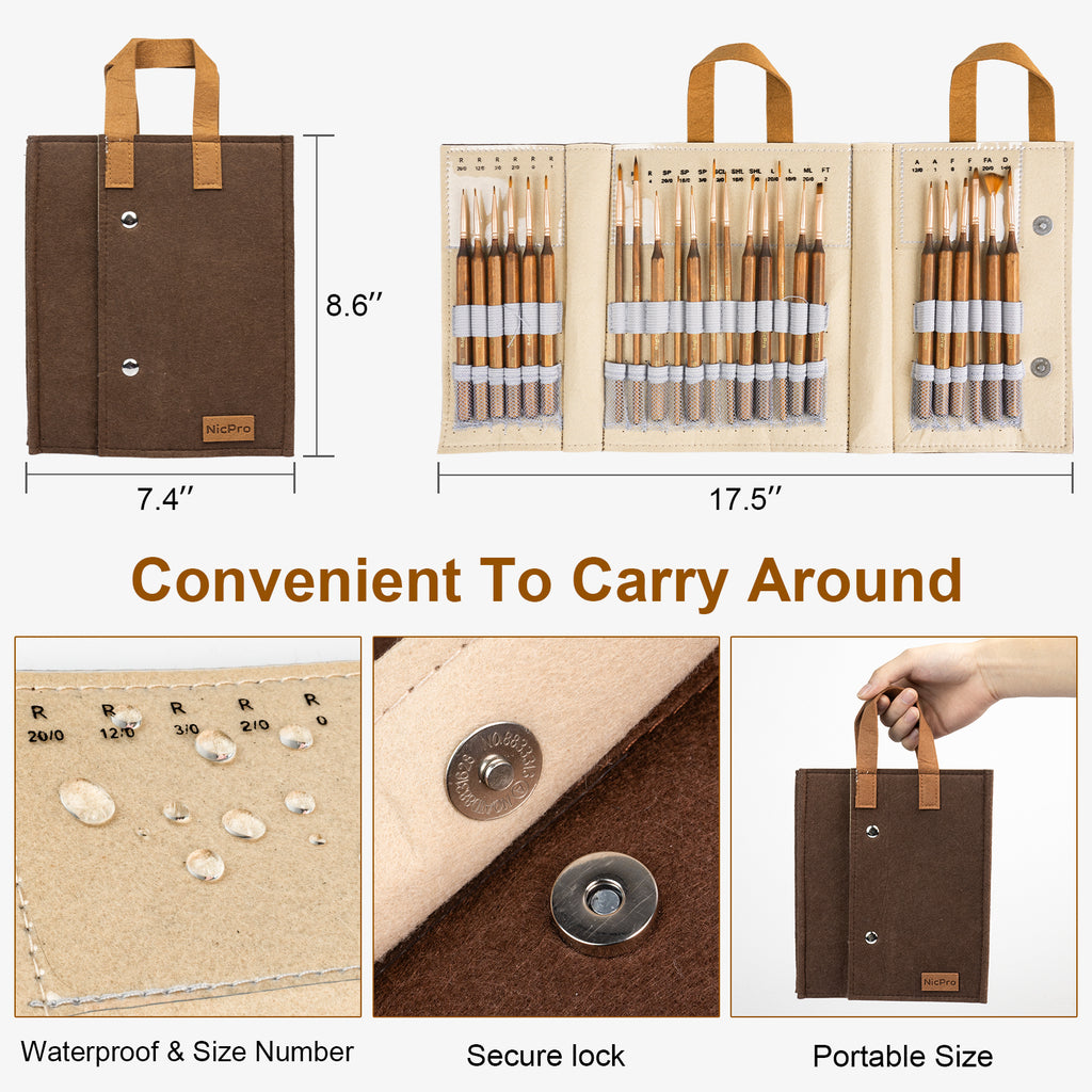 - Convenient Storage & Carry: Come with a delicate handbag to keep all brushes organized. Well label on the storage bag that stopping worrying about misplacing your brushes. It also being waterproof and oil-proof for the brushes it hold. Fits well in a backpack or carry bag, perfect for outdoor painting or traveling