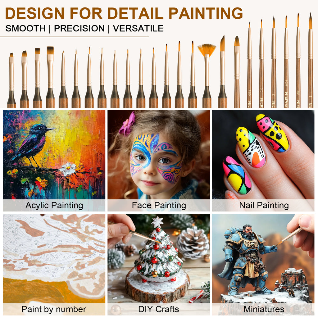 - Ideal for Miniatures: Nicpro detailing brush set is perfect for miniatures, ultra fine detail painting, paint by number, crafts, models, nail art and rock painting. The exquisite packaging makes it a best gift for family or friends in Christmas, Thanksgiving Day, Birthday, Mother's Day, Father's Day ect