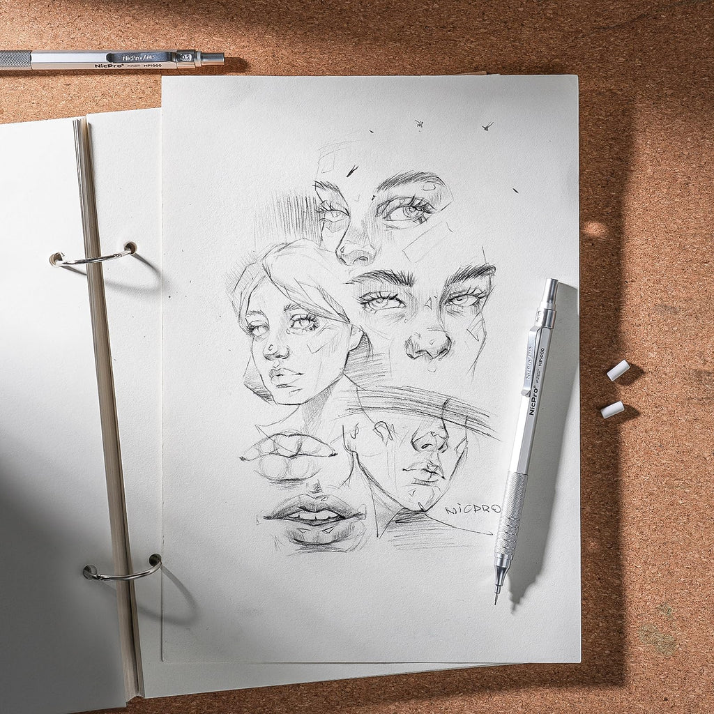 - 【Metal Threaded Anti-skidding Grip】 Nicpro MP1000 pencil adopt fancy hexagon barrel design with metal threaded grip, well balance pencil which bring you comfortable & fatigue-free writing & drafting experience